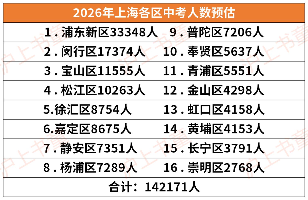 结合实际中考人数来看,2025年上海中考实际参考人数约12.7万,而2026届初三在读基数已突破14万,由此可以推断下2026年上海中考人数大概率会再度大幅上涨,最终预估参考人数至少达到13万,大概率稳定在13.5万左右,升学竞争压力进一步升级。