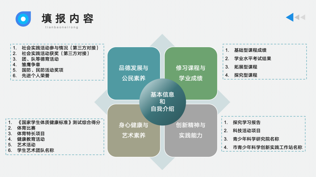 综评填报涉及5大板块,项目众多: