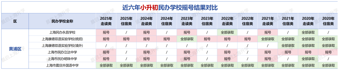 冯老师这边再附上黄浦区这几所民办学校近几年的摇号率: