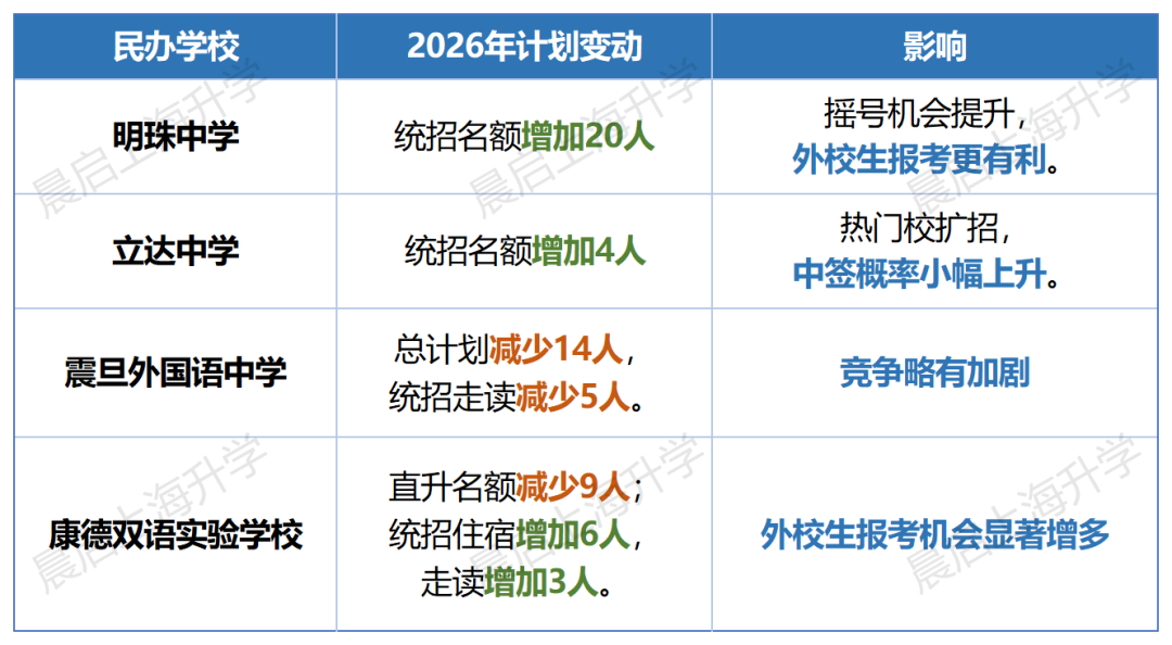 统招名额上,明珠中学增加了20人,然后立达中学增加了4人,这两所热门学校都进行了扩招,很有助于摇号机会的提升,这对外校生报考很有利。