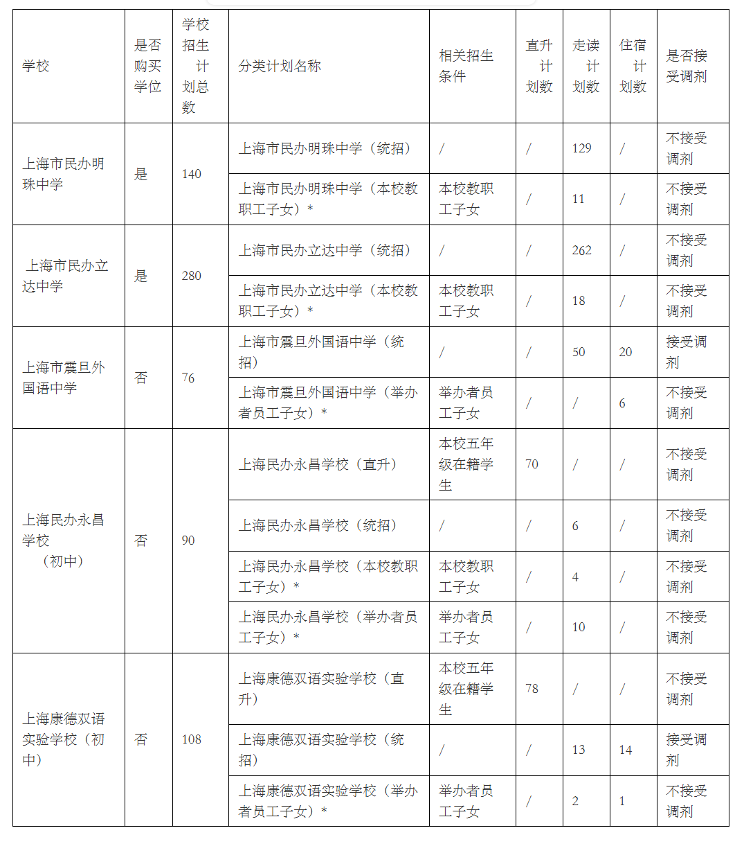 还有康德双语实验学校,今年它的内部结构有比较大的调整,直升名额减少了9人,但相应的统招住宿大幅增加6人、走读增加3人。