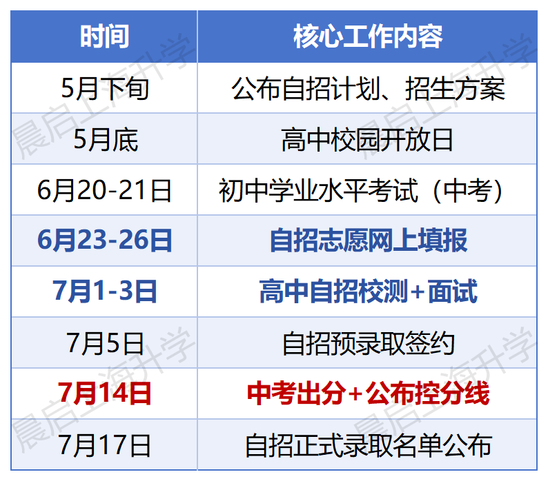 在文章的末尾,冯老师附上自招官方时间轴: