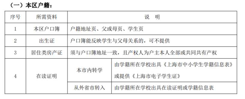 (1)家长一方是本区户口,学生同时在本区办理上海市居住证;