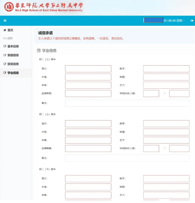 (华二过往报名系统截图示意,仅供参考)