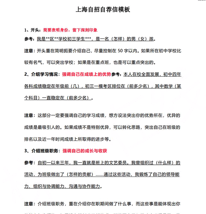 2024中考上海四校八大自招攻略 附自招真题和简历模板