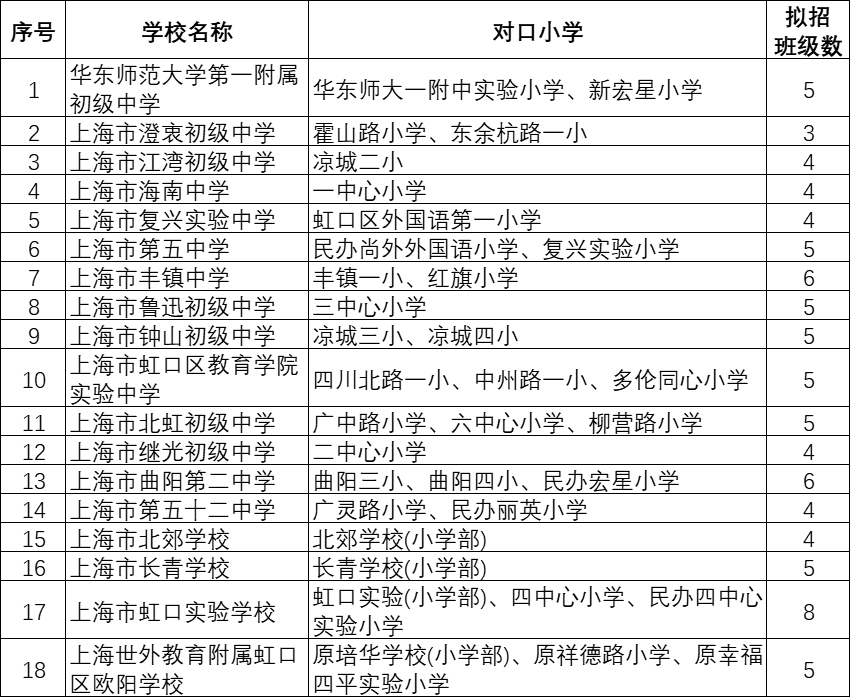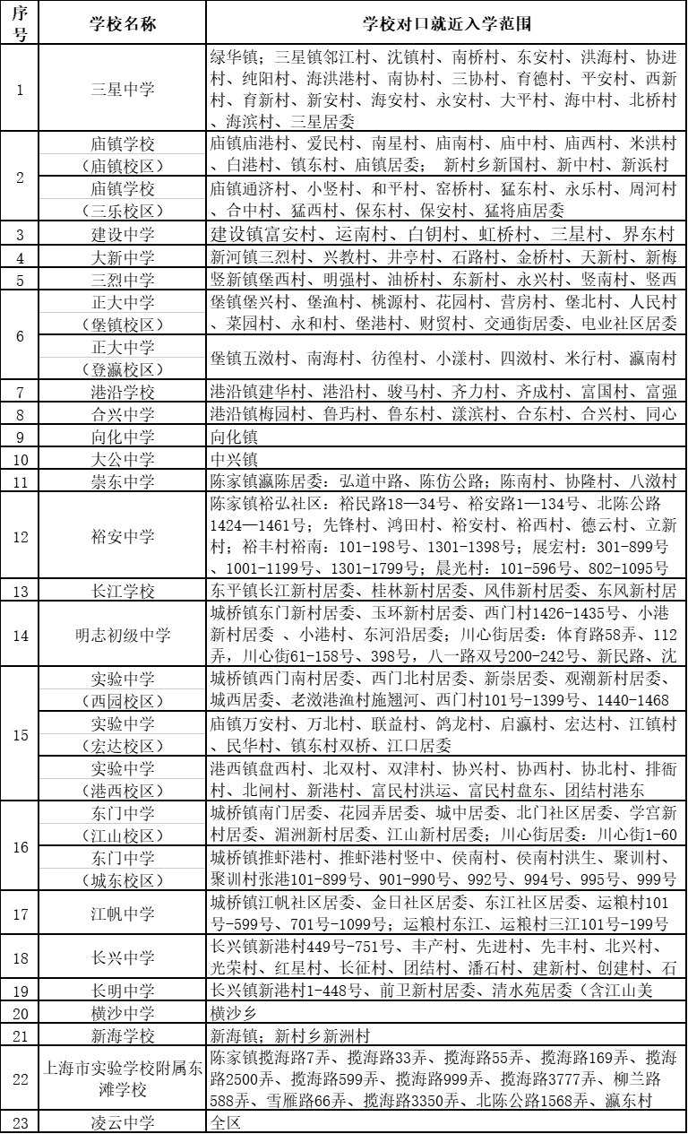 ① 户籍对口:浦东、闵行、宝山、嘉定、金山、奉贤、崇明、松江、青浦