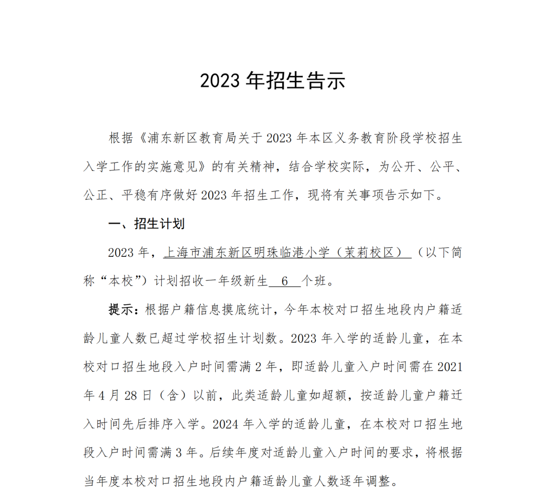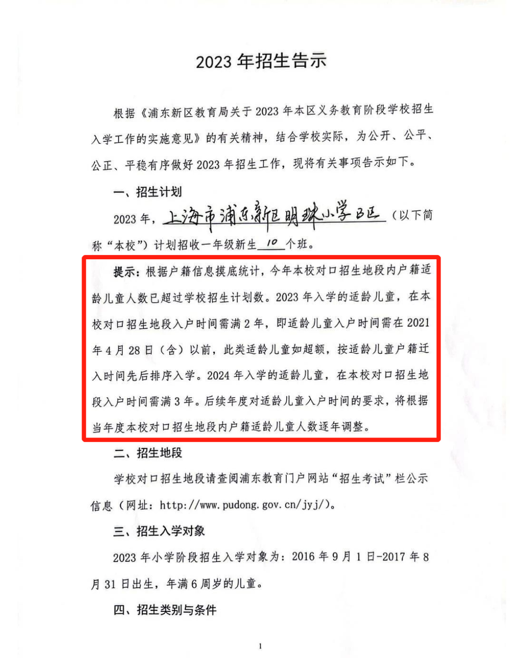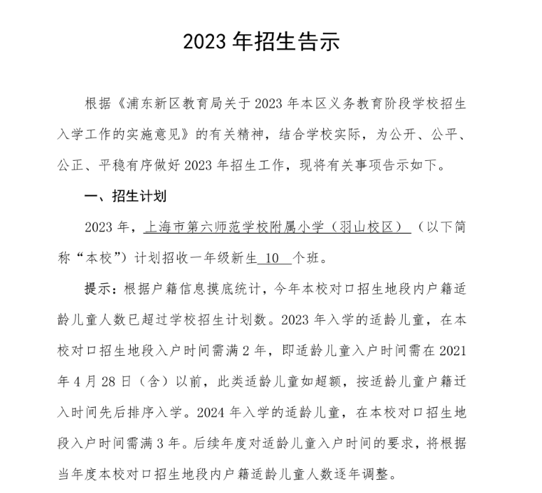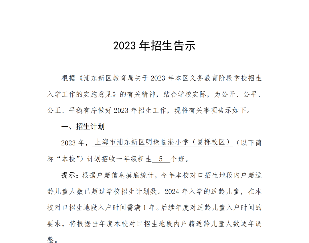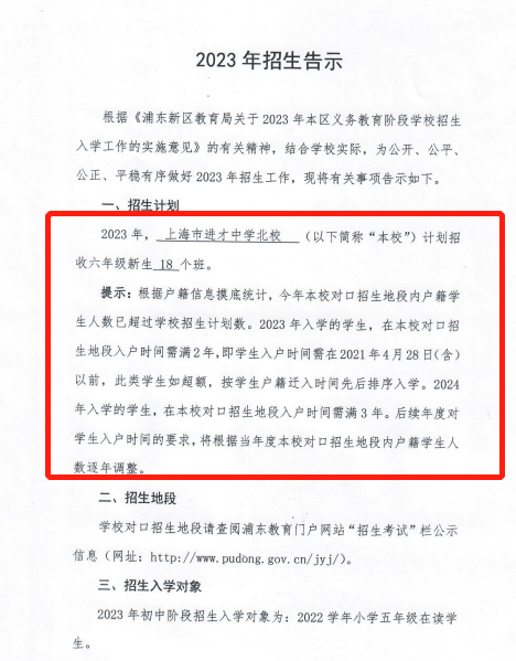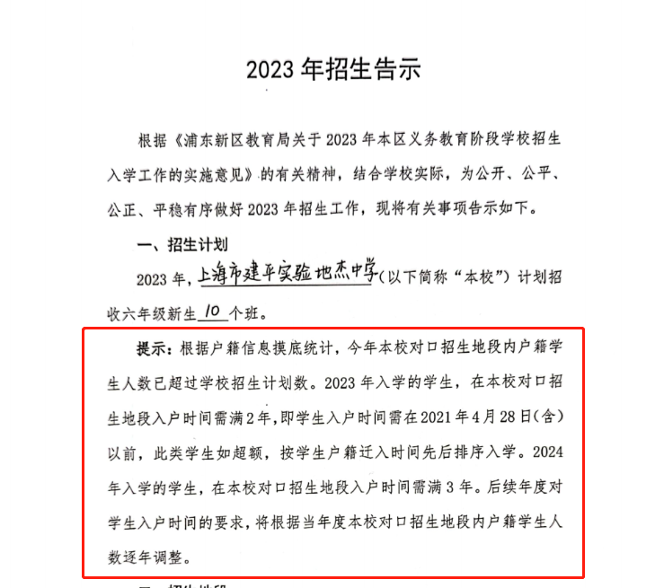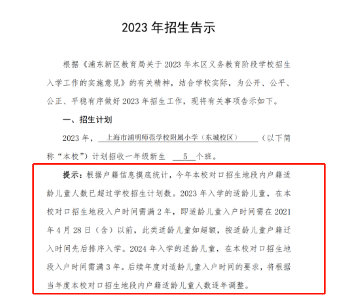 2023年10月,上实东滩首次发布了2024年学位预警。上实东滩位于崇明区是上实的托管校自创办以来办学质量深受家长认可而且它的招生方式有些特殊除了地段对口外还针对市内5区(浦东新区、杨浦区、宝山区、虹口区、静安区)摇号招生。本次发布超额预警也是崇明学校里,唯一一所发布学位预警的学校。上实东滩官网公告说明主要有2点:1、根据23年的招生情况摸排,对口范围内适龄学生可能超过学校的计划招生数;2、24年预计类似的情况会依然继续,所以学校会根据人户一致原则,按户籍迁入时间、取得房产权时间的先后,排序入学;
