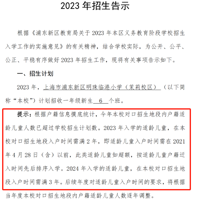 发布预警的学校,基本都是各区的公办名校,由于每年报名人数众多,各校入户年限的要求,也越来越高。