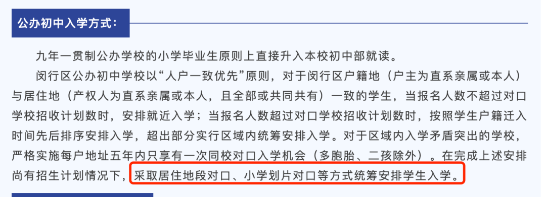 闵行区不光采取地段对口的方式,同时也采用小学划片对口的方式安排学生入学。
