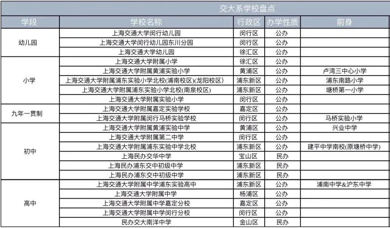 “交大系”的学校基本分为两大类,一类是更名校,一类是和区政府合作的新建校: