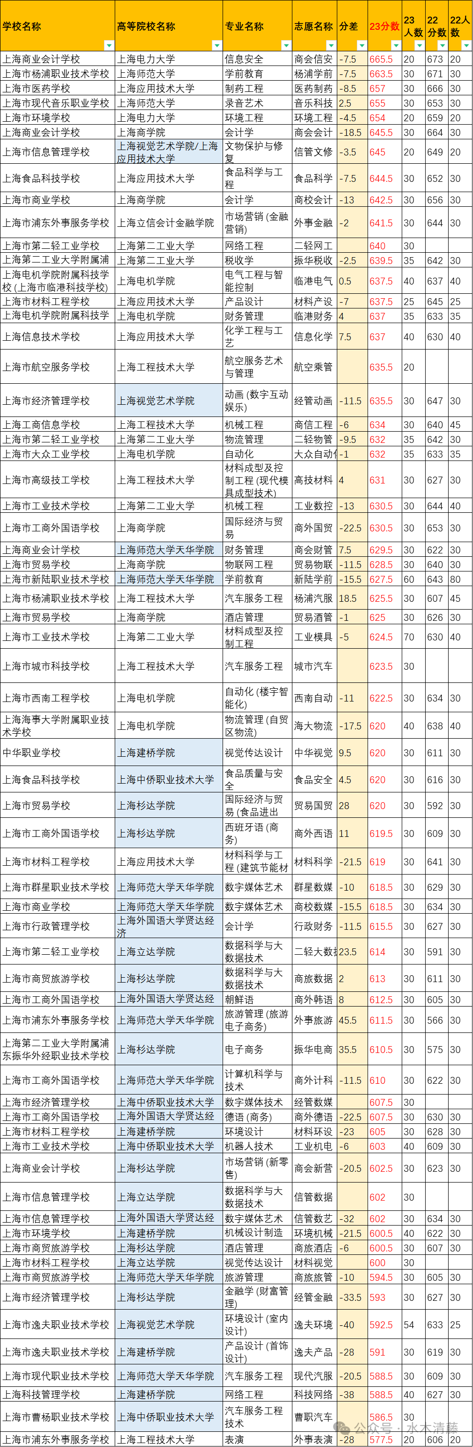 23中本贯通的录取分数线总体上是不断上涨的,有65个参与招生的专业,其中录取的最高分是商业学校的商会信安专业,分数线是665.5分;
