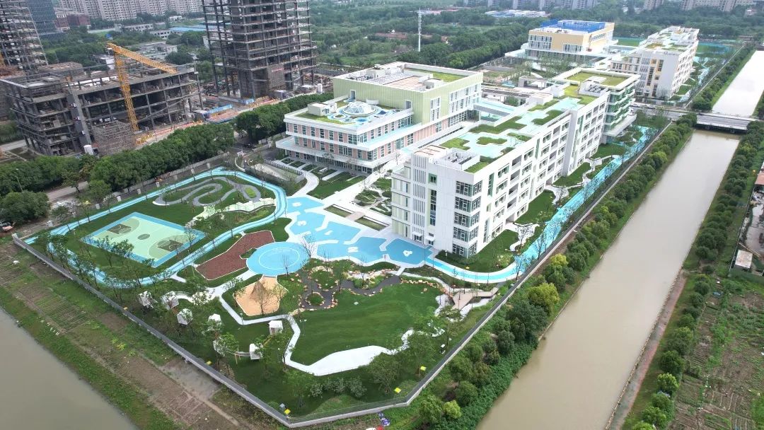 上实新城分校位于嘉定新城核心区域,为九年一贯制学校,共设54个班级,其中小学部30个班级、初中部24个班级。在项目设计施工过程中,上实新城分校秉承总校“尊重个性差异、发掘个性潜能”的教育理念,坚持“始于实验,但不止于实验”的探索精神,充分利用地域水绿环境总体布局,巧妙融入了水景教室的设计理念,整个校园依河而建,空间充满了生机与活力,将自然景观与上实美丽校园计划升级再现。
