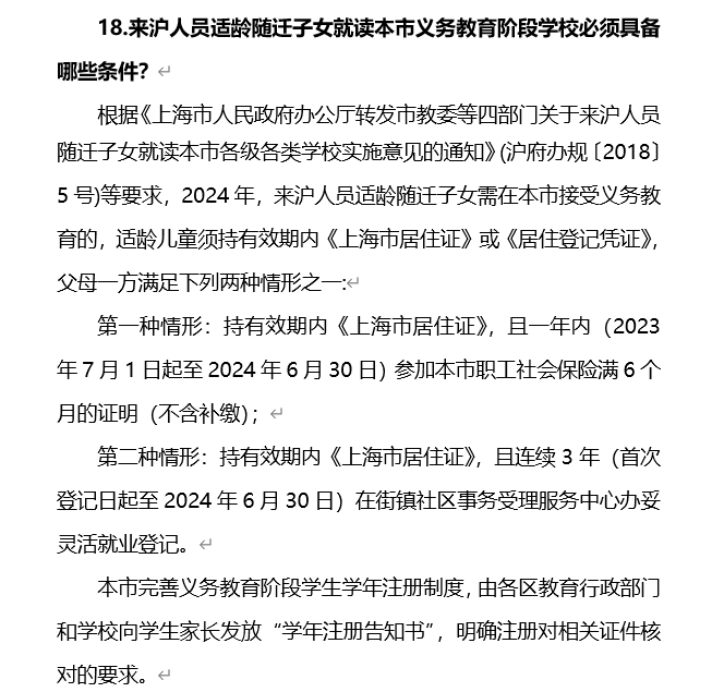 (▲来源:市教委等四部门《关于来沪人员随迁子女就读本市各级各类学校实施意见的通知》)