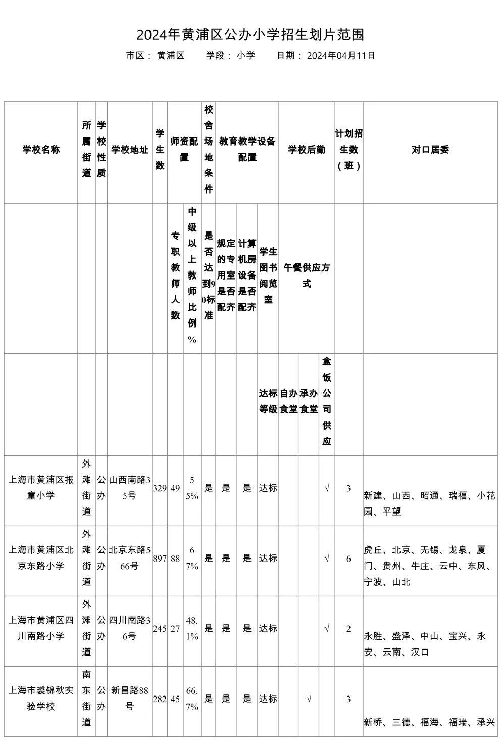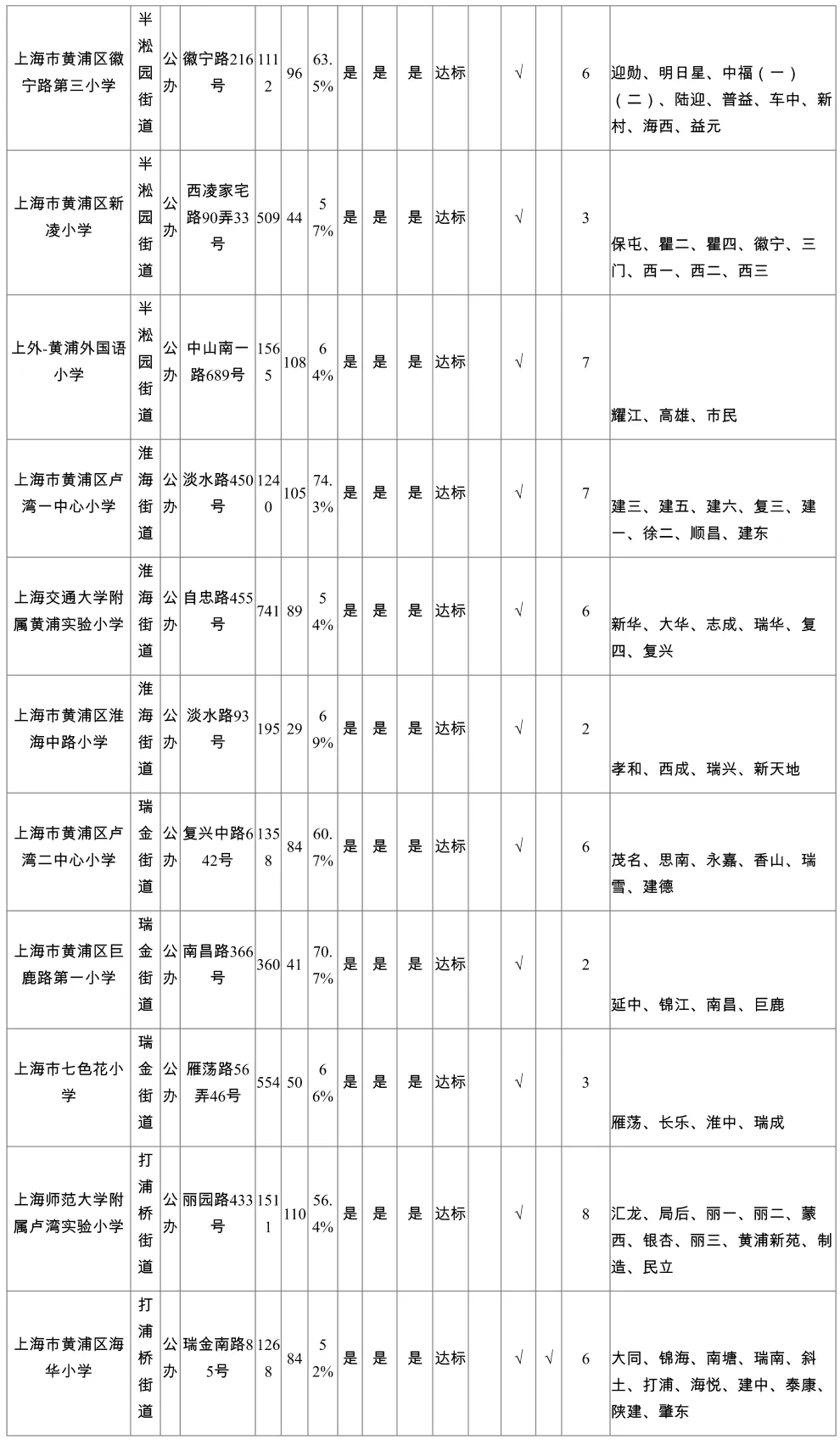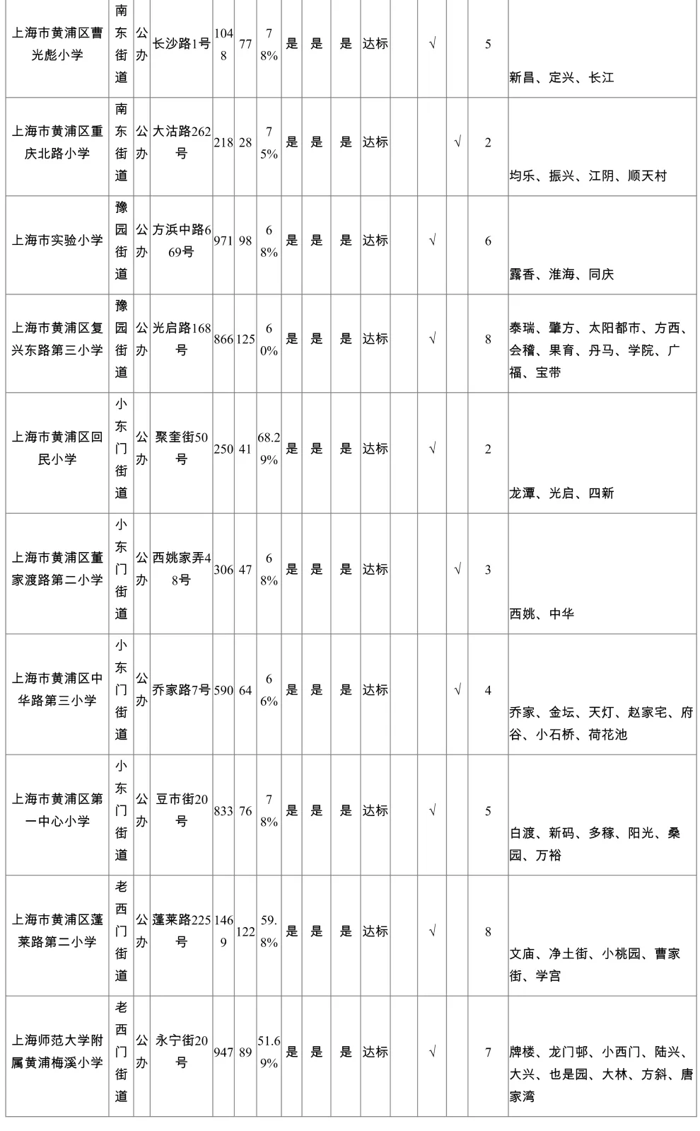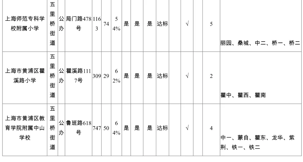 黄浦区公办三梯队小学对口