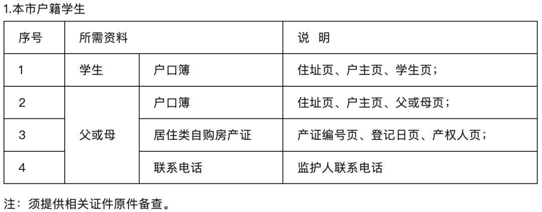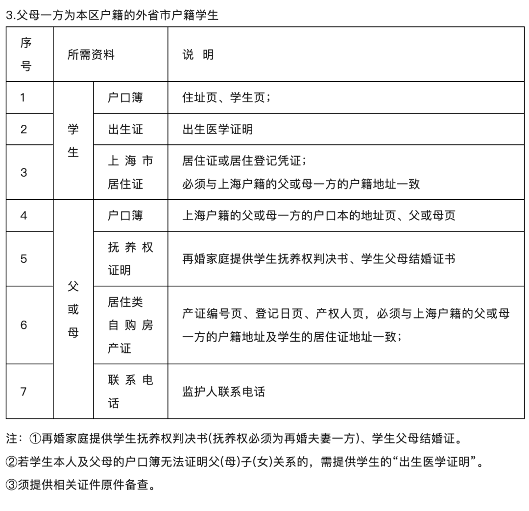 ①港澳台籍学生:若学生本人及父母的证件无法证明父(母)子(女)关系的,需提供学生的“出生医学证明”;因政策原因无法提供境外人员住宿登记单的,须提供产证或《上海市居住房屋租赁合同登记备案通知书》;须提供相关证件原件备查。