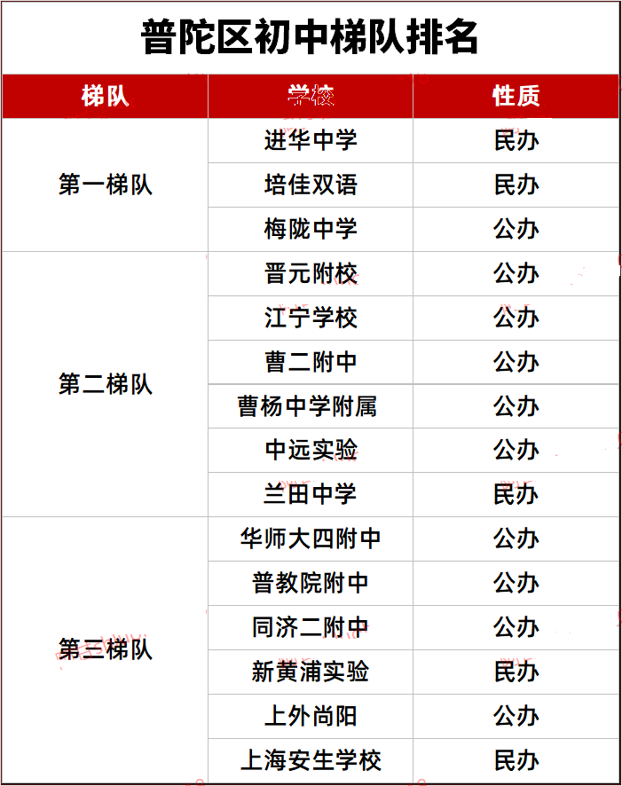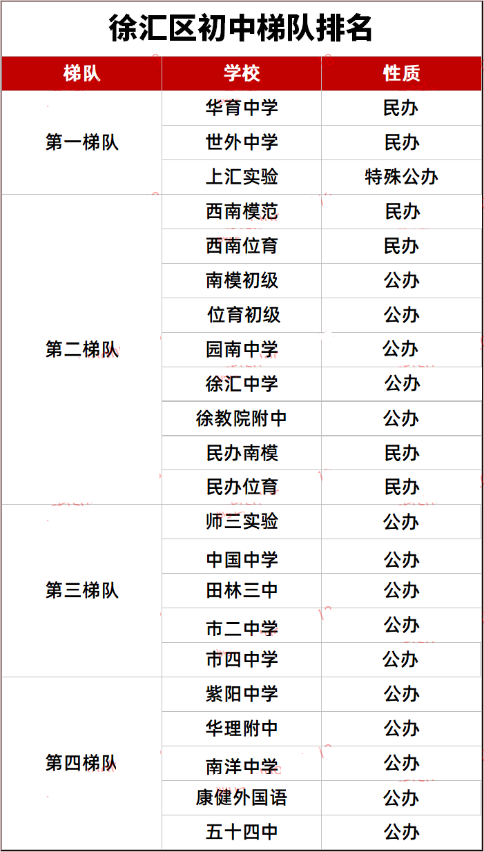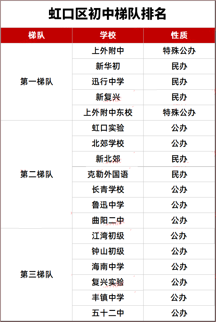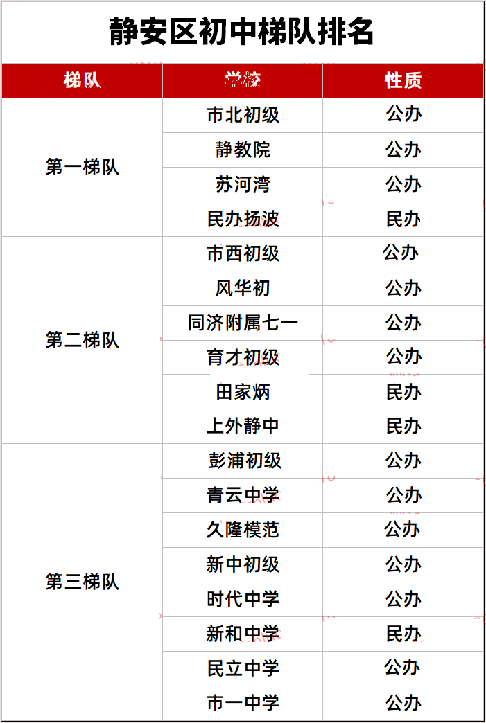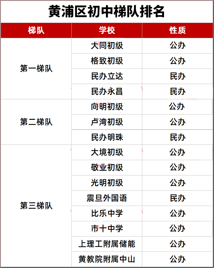 本人是做杨浦的,了解更多一些,初中梯队排名也可以参考一下这张图,由其三门中学(又名:财经大学附属初级中学),因为今年升学率的关系,排位上升飞快。