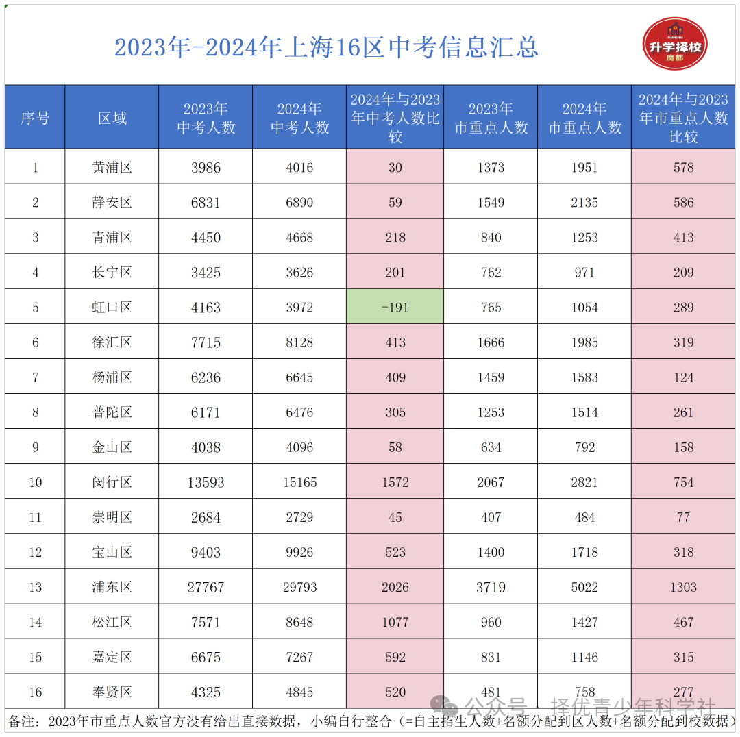 1、各区最终的实际参加中考人数,绝大部分会略低于上表中的数字。