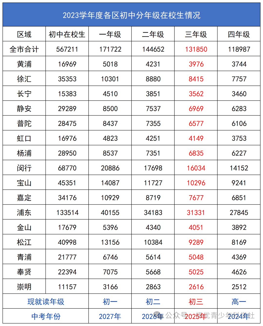 2、浦东和闵行毫无疑问仍是两大巨头,两区的2025年参加中考人数分别有望达到3万和1.5万,最终即使没到应该也会很接近。