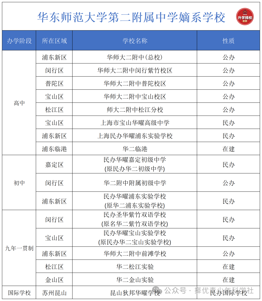 华东师范大学第二附属中学嫡系学校