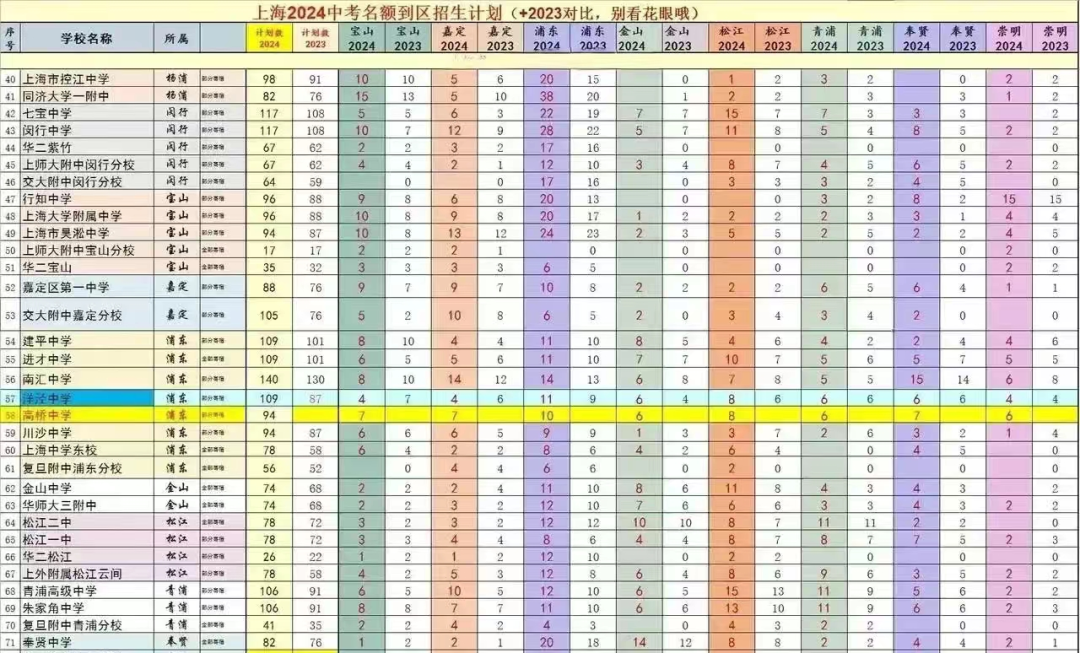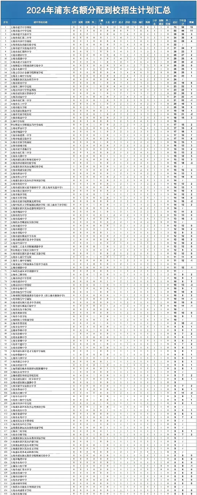 浦东区初中名额分配到校招生计划人数