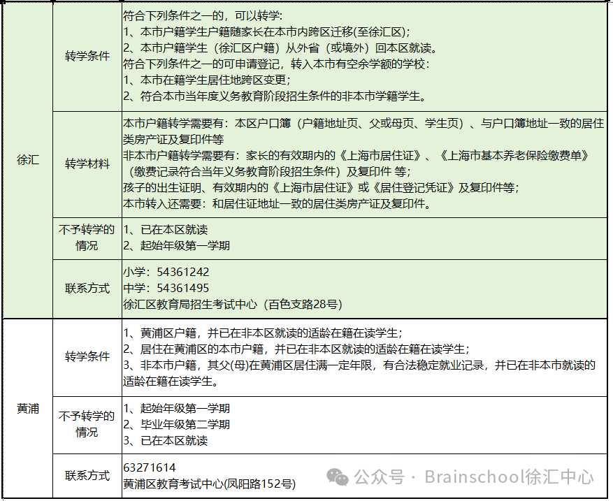 以下是上海徐汇、黄浦、长宁三区的转学政策简单汇总,每年基本变化不大,若想了解其它区的政策,具体可以自己查各区教育局网站。