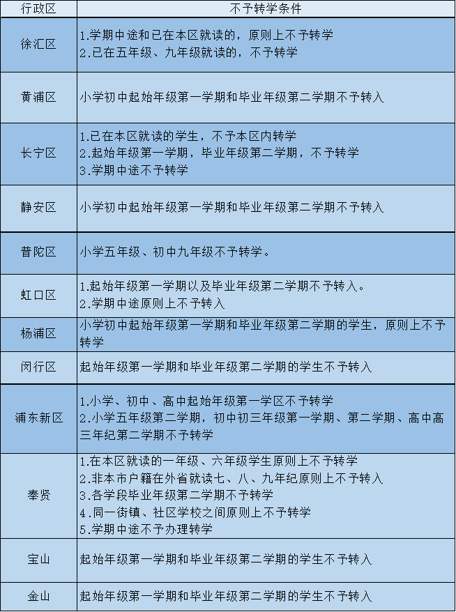 但是也有例外, 如嘉定、奉贤、浦东、松江、虹口是允许区内转学的。普陀和宝山允许区内转学,但不允许相邻街道转学。