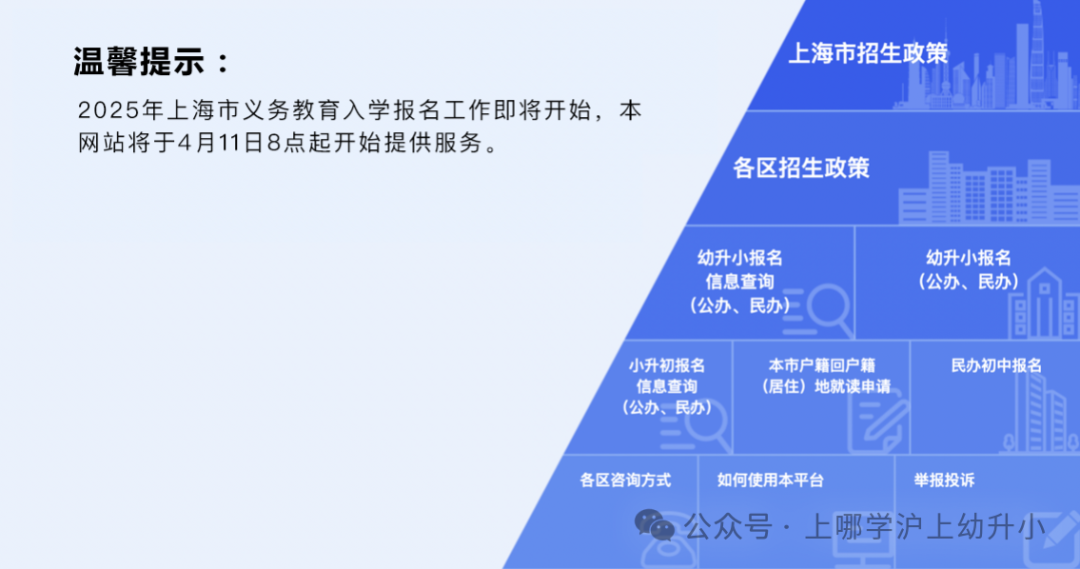 (zwdt.sh.gov.cn)、随申办市民云或上海教育微信公众号进入义务教育入学报名系统