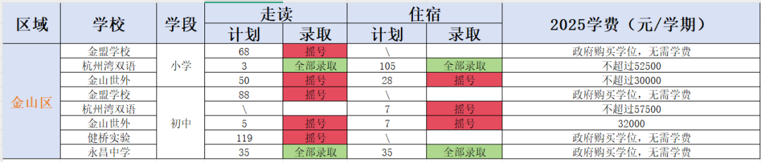 金山世外,走读计划招生5,住宿计划招生7,全部超额摇号。