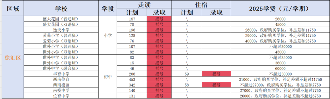 徐汇区全区只有4所民办小学和6所民办初中,数量虽少,但质量绝佳,随便拎出来一个都相当优质。因此全区民办学校超额摇号也在意料之中。