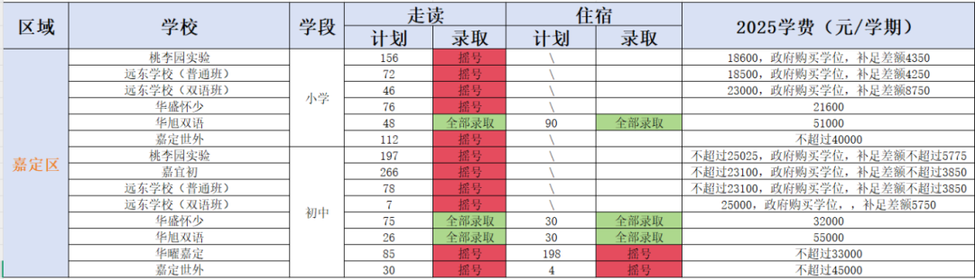 华曜嘉定,走读计划招生85,住宿计划招生198,全部超额摇号。