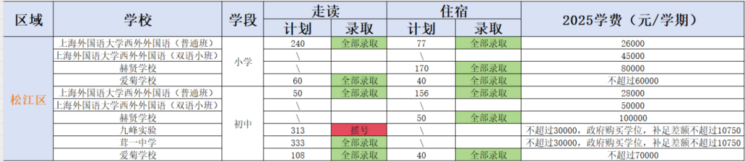 松江有3所民办小学,今年都全部录取,有5所民办初中,除九峰实验超额摇号外,其它全部录取。