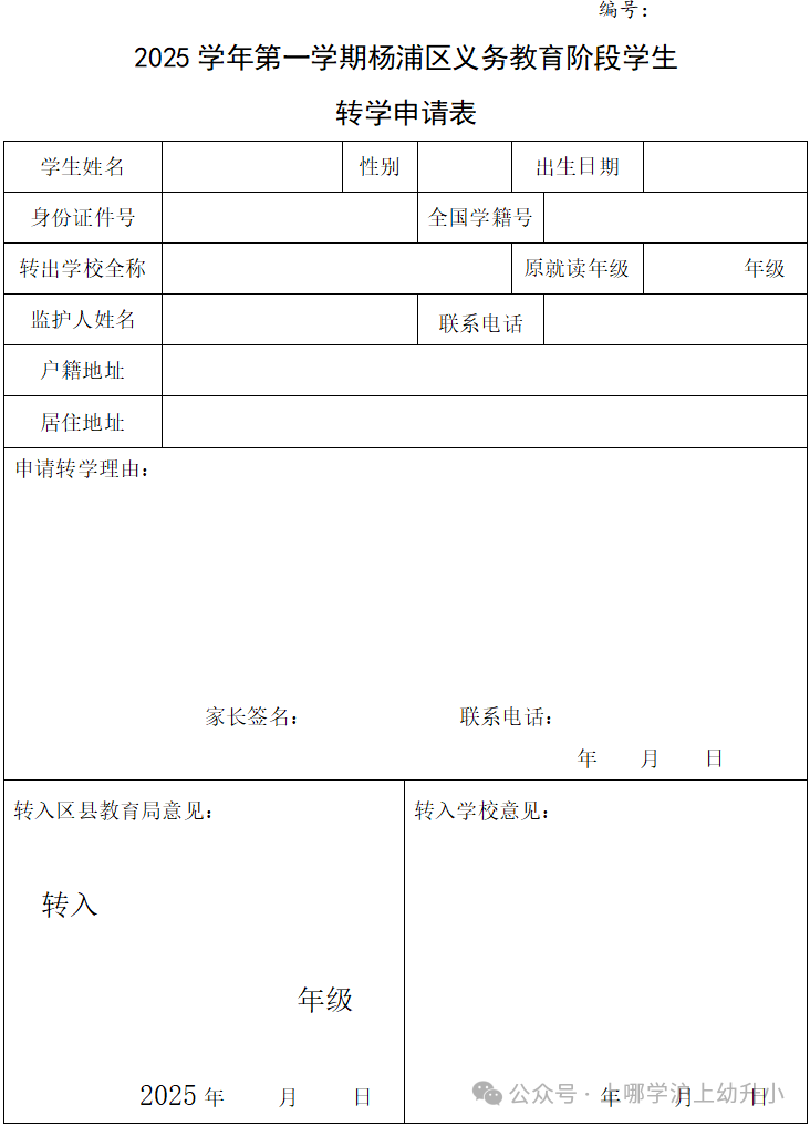 杨浦转学申请表