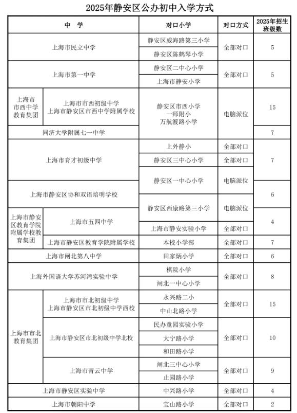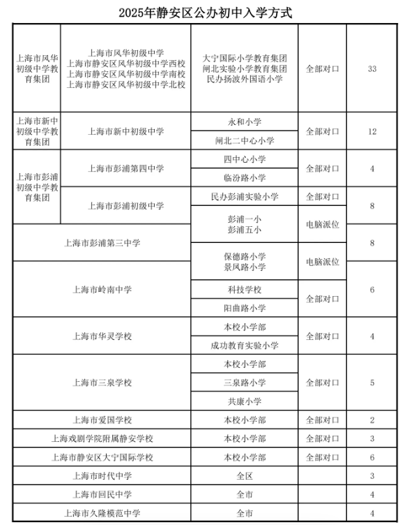 2025年静安区公办初中入学方式