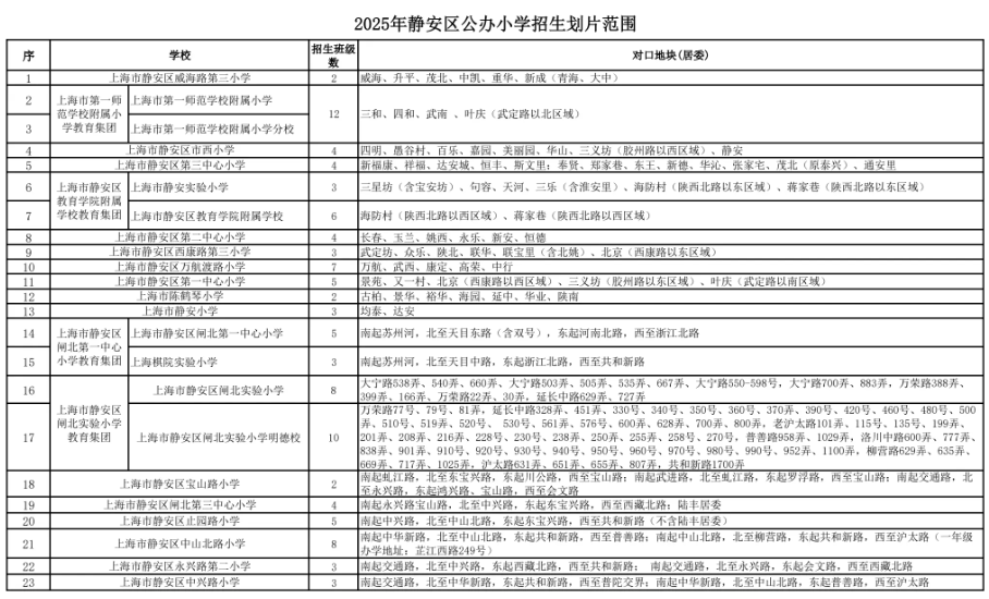 2025静安学区攻略|静安公办小学+初中招生划片范围汇总