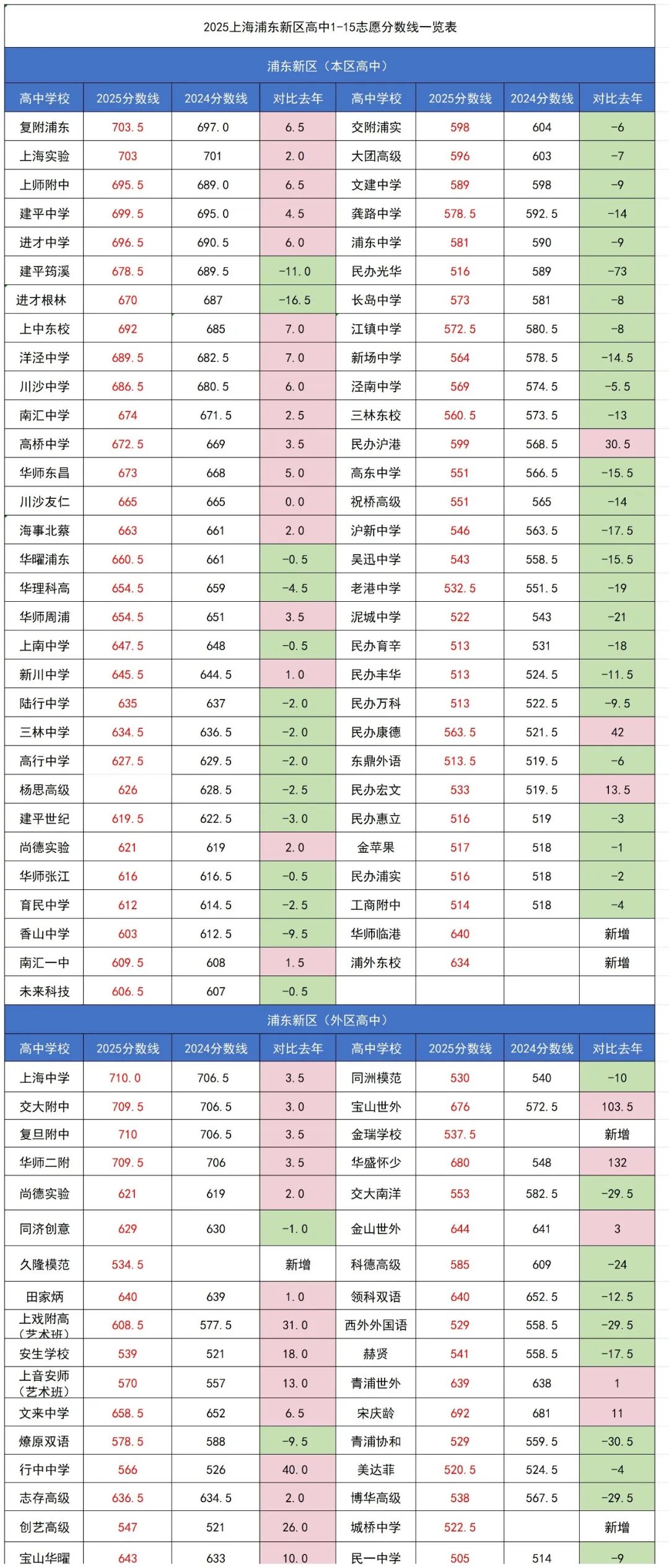 2025上海16区中考平行分数线大汇总,两级分化严重,头部越卷越高