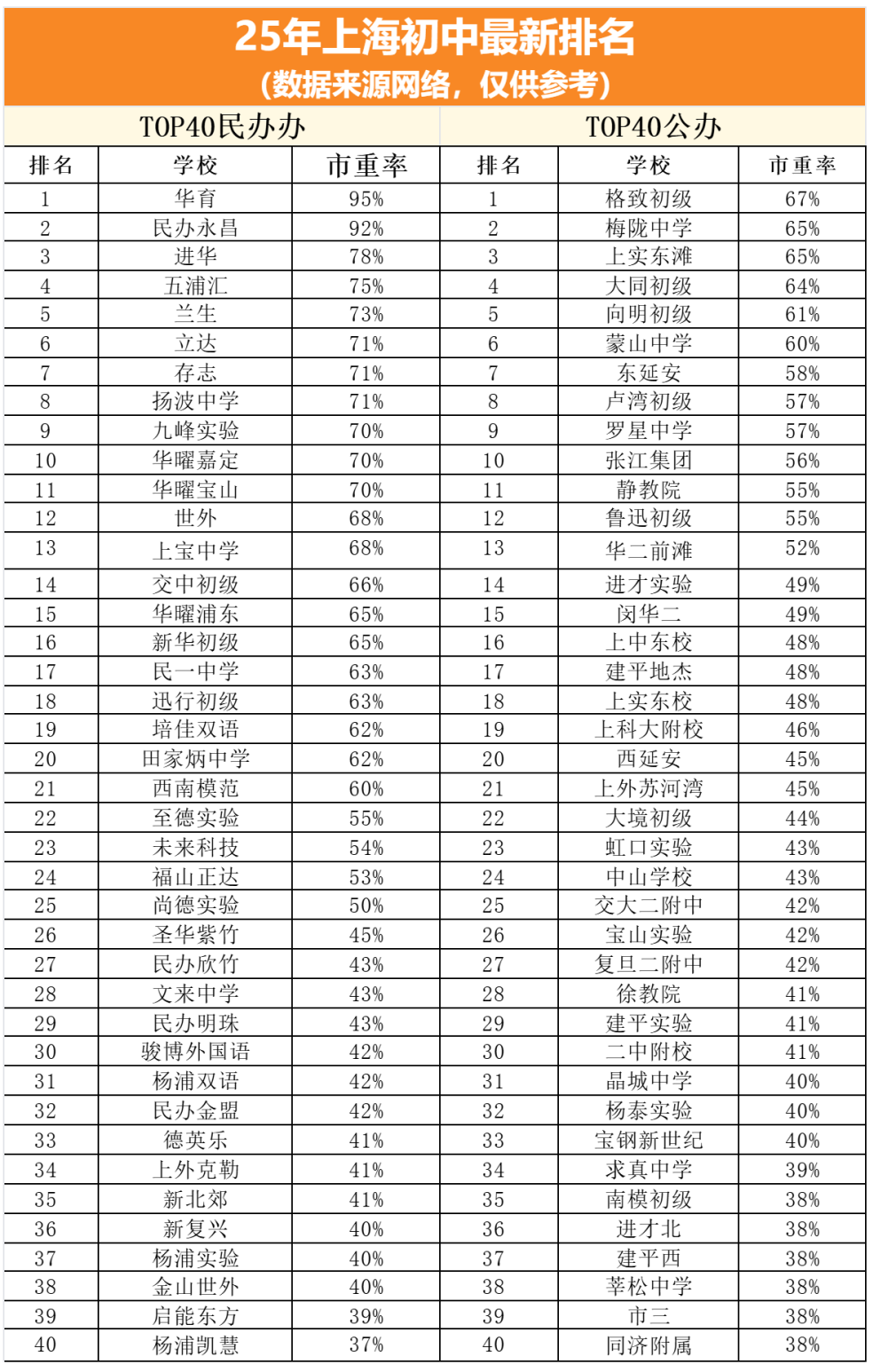 家长在小升初择校过程中,也可以提前查看下最新的上海公民办初中学校排名来作一些参考