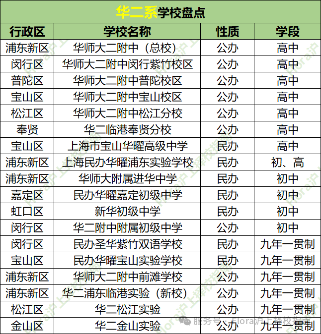 截至目前,在义务教育阶段,“华二系”已有6所直系公办附属学校: