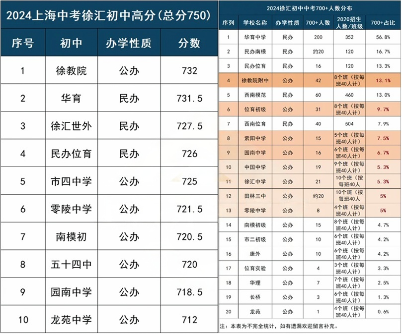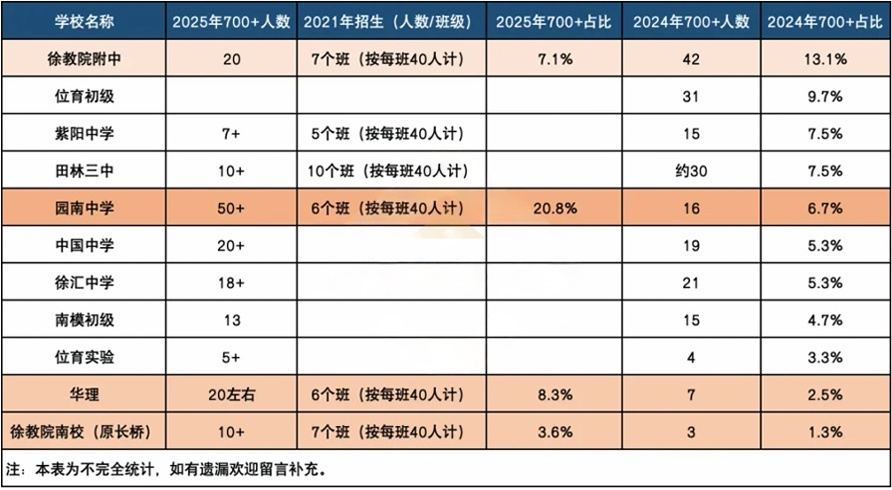 尽管此次公布的700分及以上考生比例数据有限,但从整体趋势来看,可以判断徐汇地区的公办第一名已经发生变化,并且出现了两所明显崛起的黑马学校。