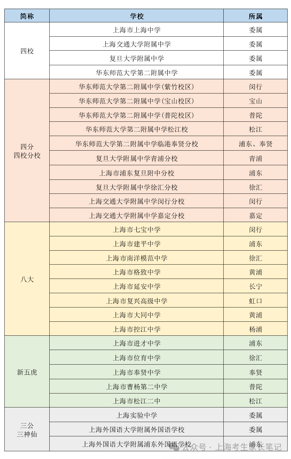 3. 每年上海市教委都会发布最新的"****年上海市高中招生学校名单",所以一定要查看每年最新名单。
