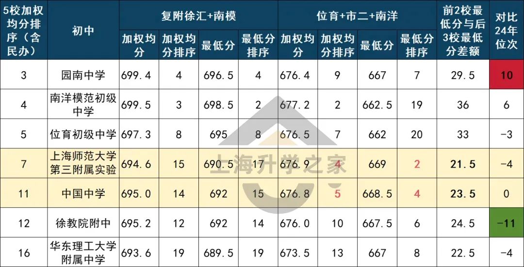 目前5所徐汇的九年一贯里,复附徐汇实验、西位实验还没成绩,位育实验相对一般,上汇实验背靠上中却惨遭翻车;