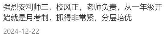 据在校家长透露,学校换了校长后狠抓分层教学,作业量暴增平时都做到10点,晚自习有老师加餐,普娃逆袭率很高;
