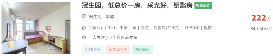 这个双学区组合在价格上要更低一点,目前的最低挂牌价是222万,还未上涨。