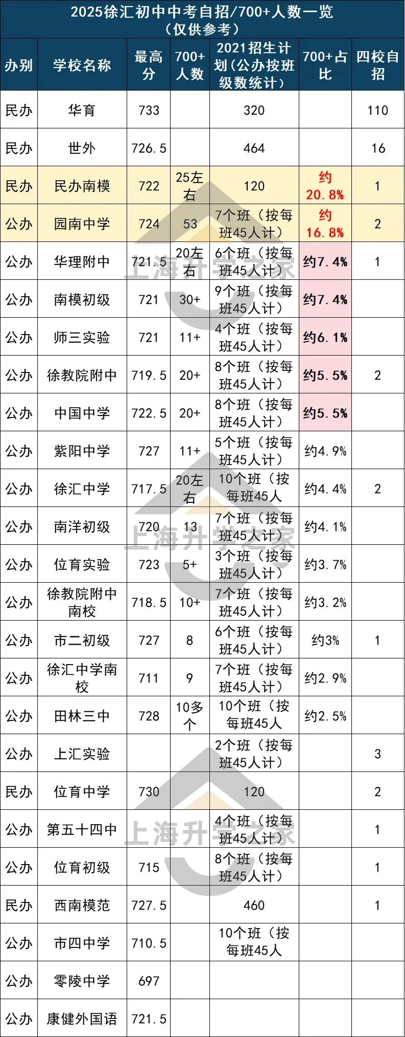 而且华理附中的高分段人数也比去年翻了好几倍,700+占比高达7.4%,直接空降公办第2!