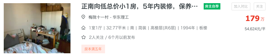 对口上实附小+华理附中的梅陇十一村,目前最低挂牌价179万,几乎是徐汇最便宜的双学区了。