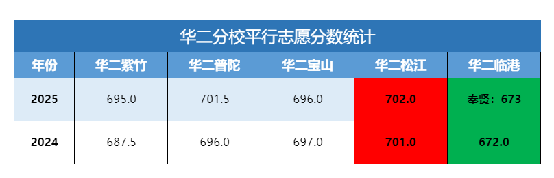 华二分校这里,如果仅以到区分数线(均分)看学校入门难度排序,华二普陀> 华二紫竹> 华二宝山>华二松江 > 华二临港。