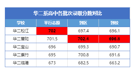 华二宝山名额到区最高分为宝山的706.5分,最低为崇明的689分。
