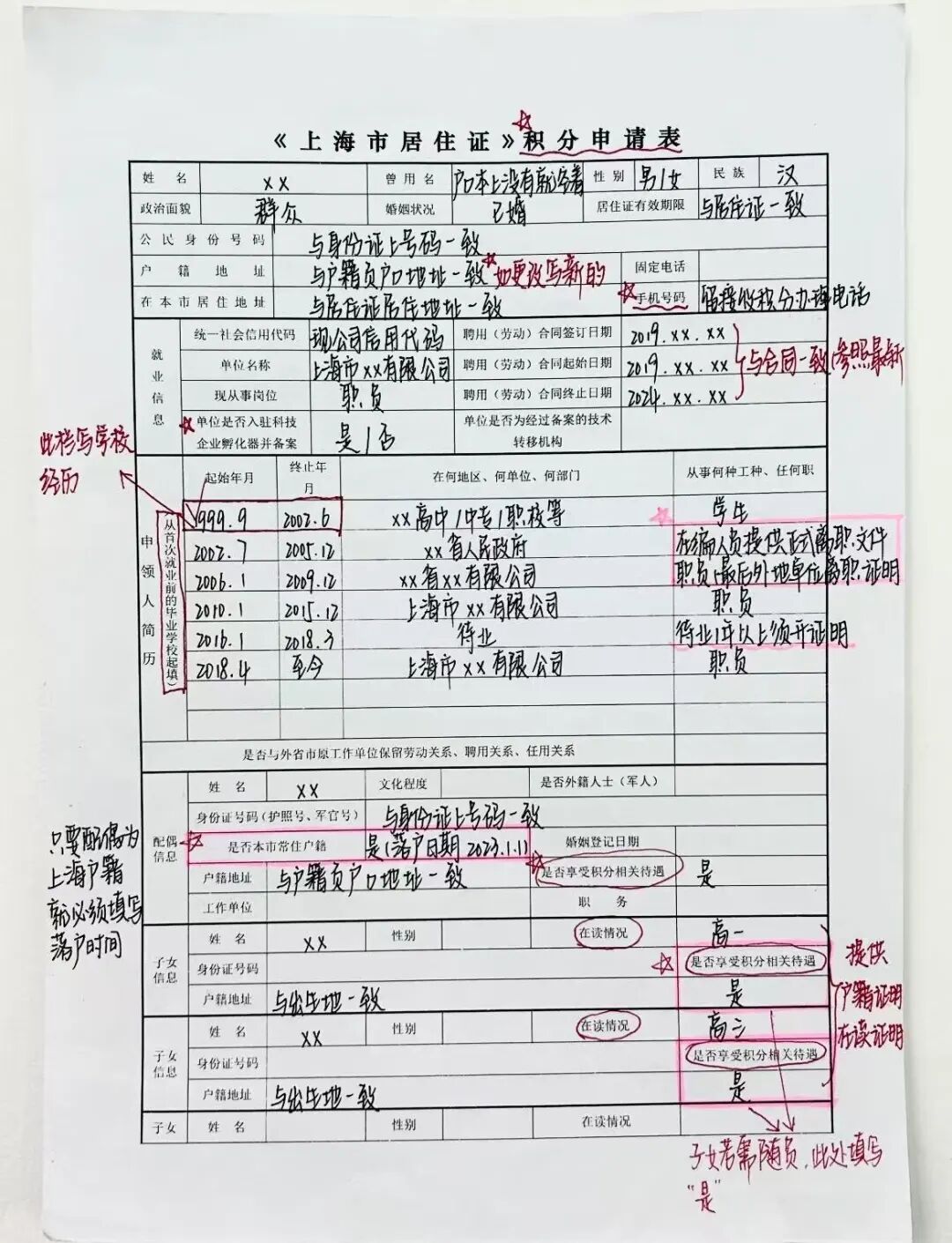 《上海市居住证积分申请表》(网上打印,加盖公章)