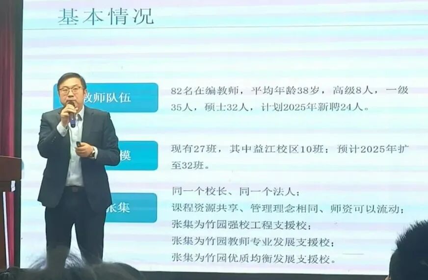 从竹园中学家长会公布的内部数据来看,进步确实让人眼前一亮: 2023年在浦东140余所初中中排名120+ 2024年跃升至100+ 2025年直接冲进60+ 实现了名副其实的“菜中逆袭”全面超区平均 2025届中考市重点录取率、区重点录取率、普高录取率全部超过区平均水平 从后20%-30%,一举冲进前50%月考数据显潜力 从月考成绩来看,益江校区40%学生达到张集的市重线 虽然与张集仍有差距:益江均分较张集语文低3分,数学低8分,英语低10分,总分差21分,英语差距超预期;森兰校区成绩偏低,学生基础稍弱 但已展现出强劲势头。 竹园中学益江校区能有这样的快速成长,和张集的深度托管有着密切关系: 1. 教学体系全面对接 “教材、试卷、作息和张集完全一致,周周爽也从没落下” 更关键的是,张集校长张军杰还亲自坐镇竹园,真正实现了教学管理的一体化。一、竹园益江的逆袭