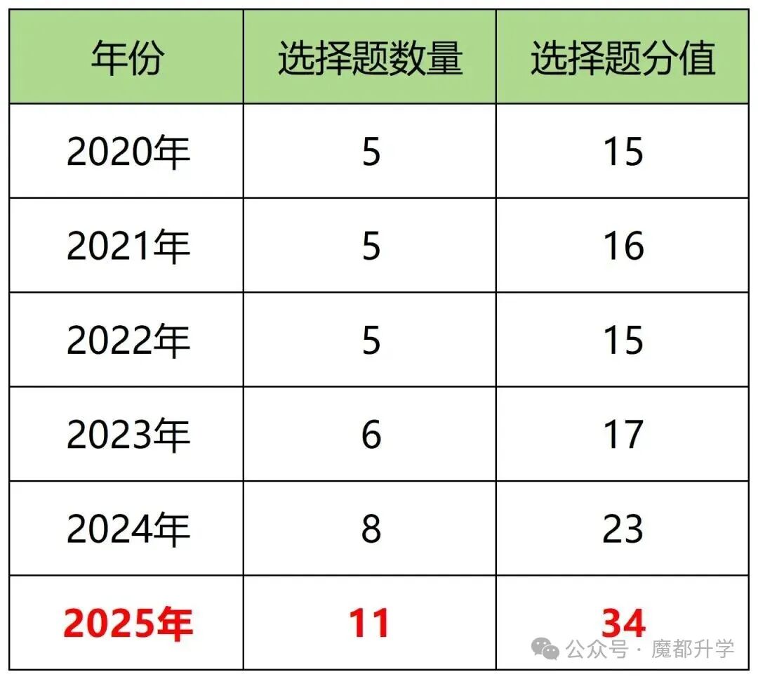 很明显的一个趋势,选择题数量增多,分值增加。因此,选择题的正确率是同学们要去追求的一个点。