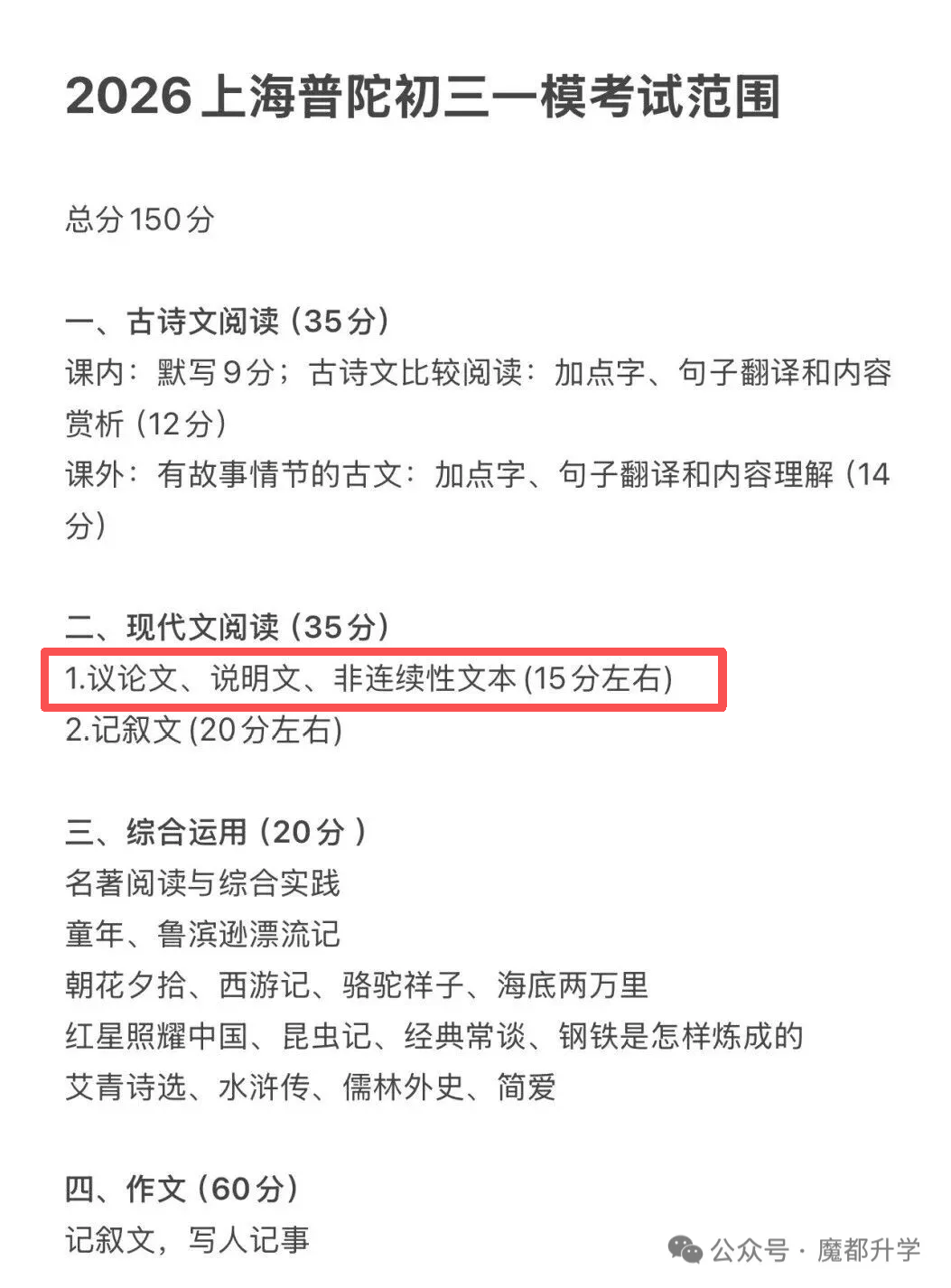 就已经流出的部分区2026初三一模语文范围来看,现代文阅读部分都有非连续性文本的影子,这也是个明显的信号。